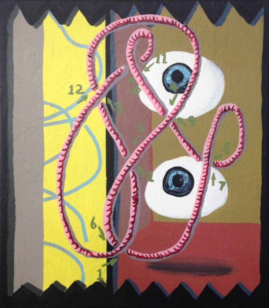 Wills’s paintings sit firmly in the language of figuration and take advantage of the discursive nature of painting, incorporating aspects of word play, quotation and the informality of the spoken word, as well as aspects of the medium’s history, questions of image making and painting’s enduring flexibility.