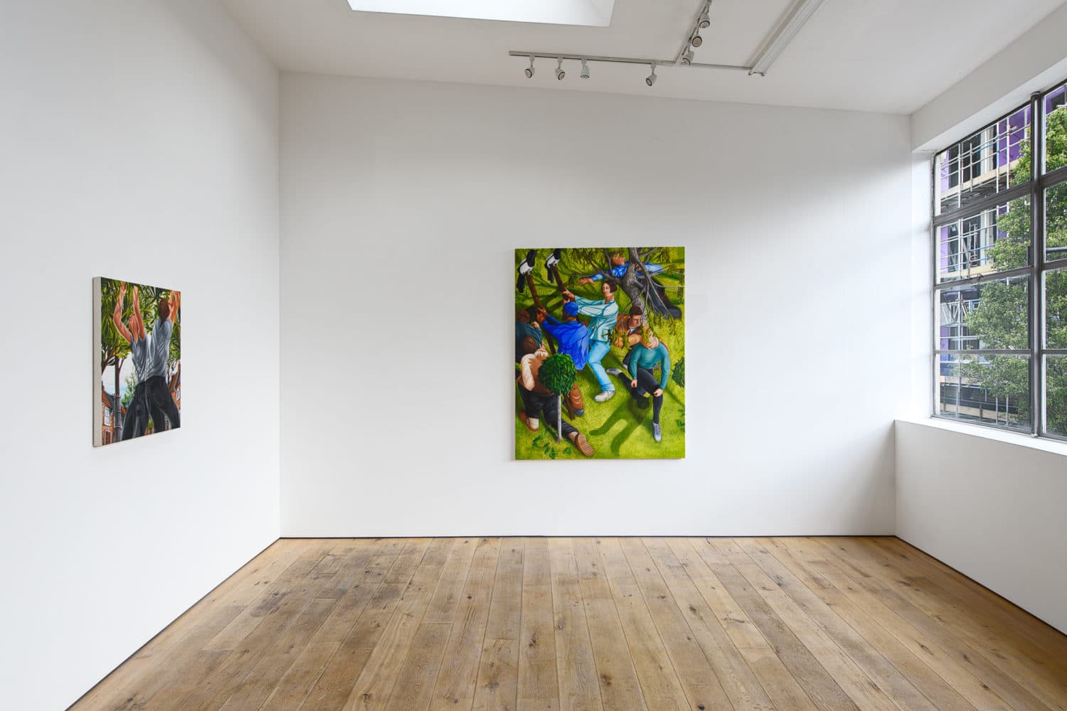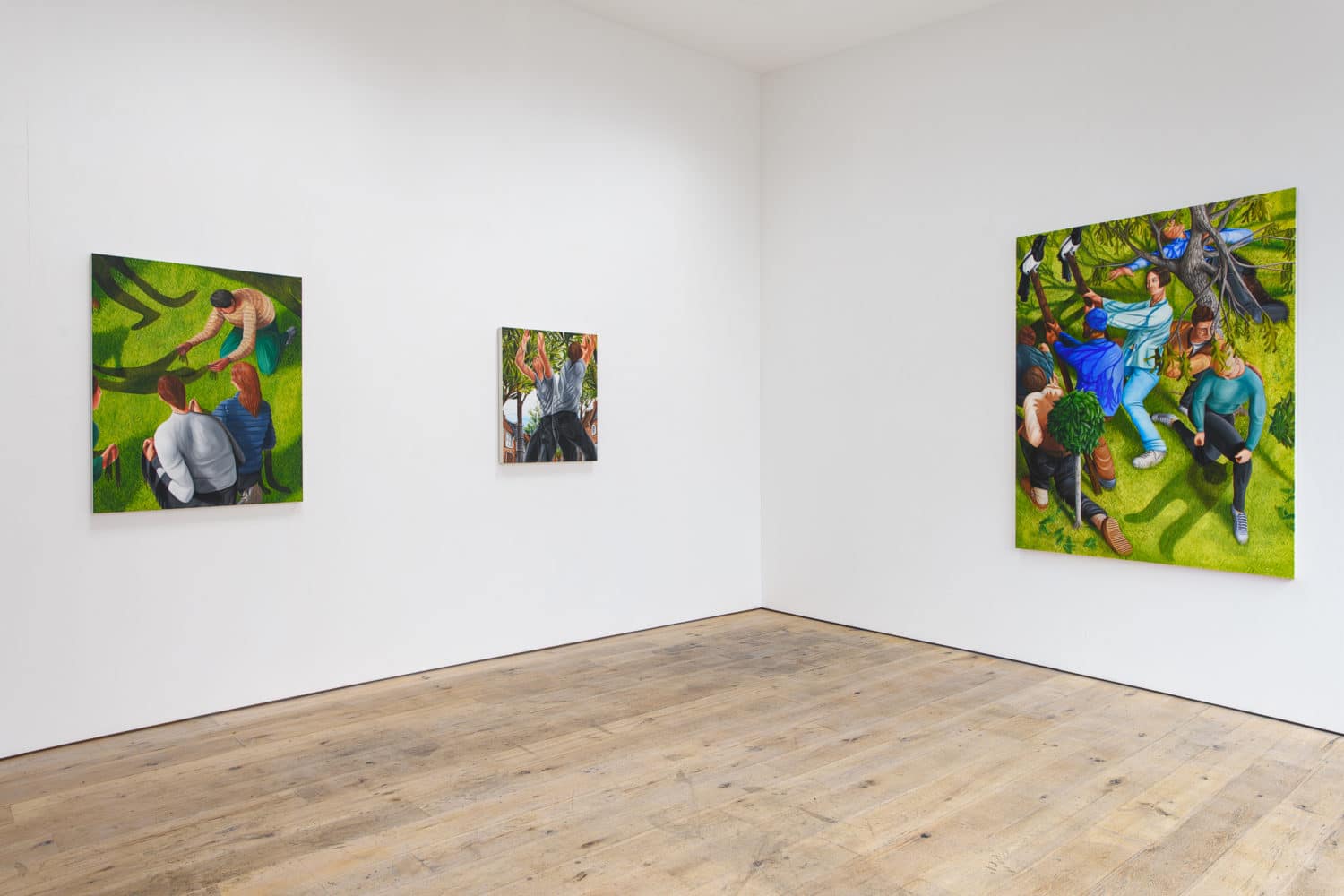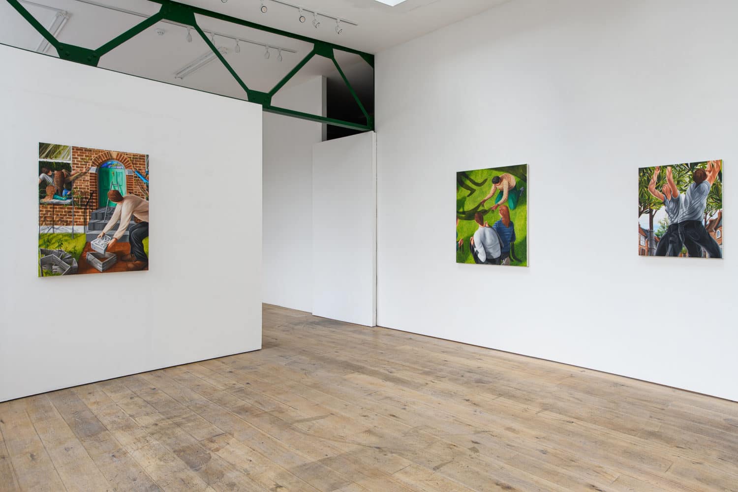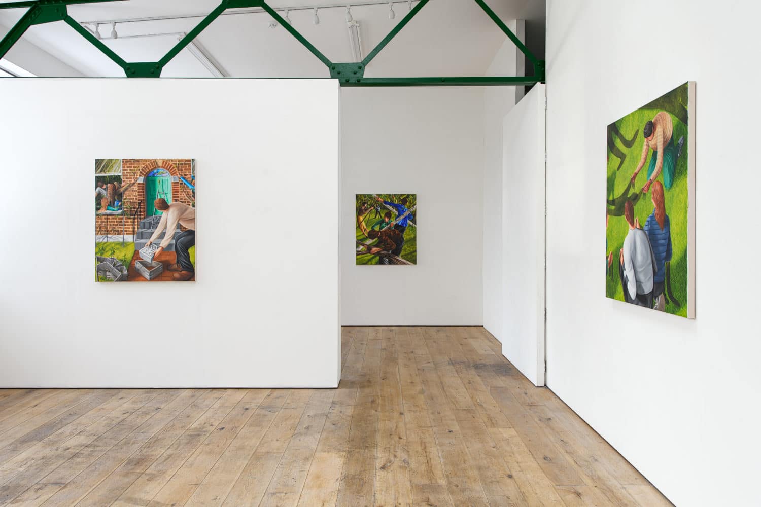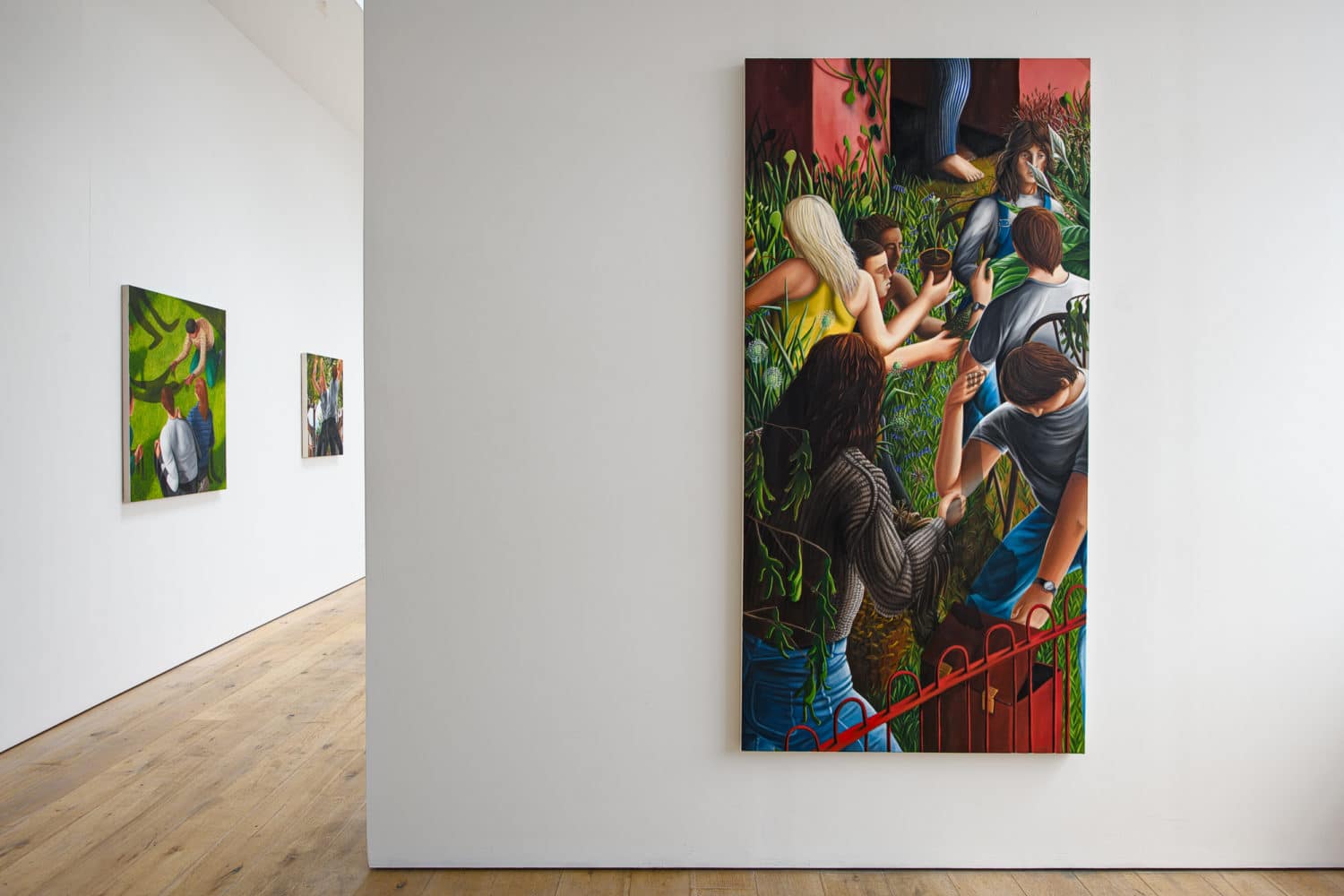 As well as referring to a jumble of autobiographical experiences, their frantic activity is a nod to the human condition. The composition and directional lines within the paintings dart ones eye around the canvases, echoing these memories as well as the seasonal and cyclical changes in the nature of the gardens that our subjects inhabit.