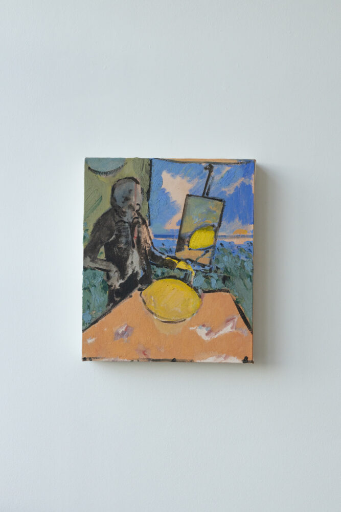 The discipline of smearing pigment onto a surface offers a tangible bedrock for my conceptual process whether these paintings come together to form constellations or whether they remain solitary within their own rectangle borders, never fixed to one geographical location or ideological structure, a fictitious realm sucking on reality like a parasite, taking what it needs to use as building material. Relationships are always key, whether between the objects themselves or where the edges of colour meet, there’s always a desire to find a balancing point where two or more elements manage to bear one another and create some kind of dialogue. Doubt is measured as currency, certainty is usually vacant; my aim is never to come to any conclusion.”