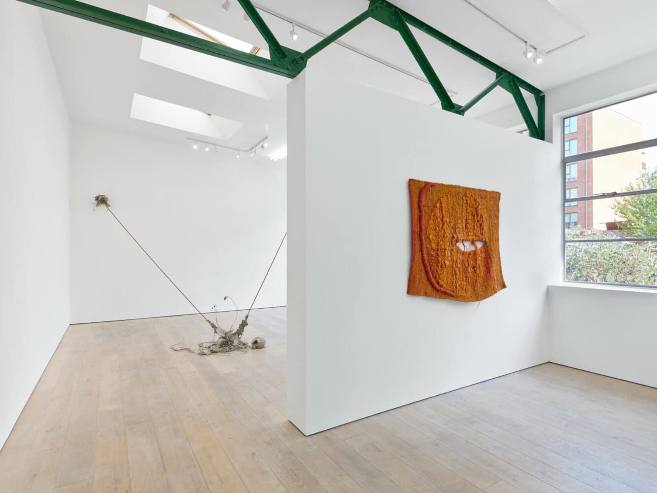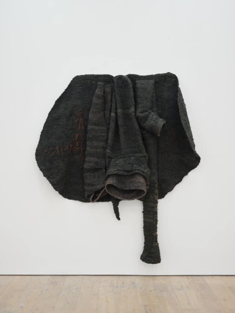 The human body is also implicit in the work of each artist. This blend of the organic and corporeal is clear in woven fibre works by Magdalena Abakanowicz (b.1930-2017). Probably best known for her Abakans – vast enveloping, womblike, seemingly timeless structures or figures that hang from the ceiling – Abakanowicz creates shroud-like forms that evoke a metamorphosis of some form of ambiguous organism; a brooding refuge to take shelter in or emerge from, imposing yet benevolent.
