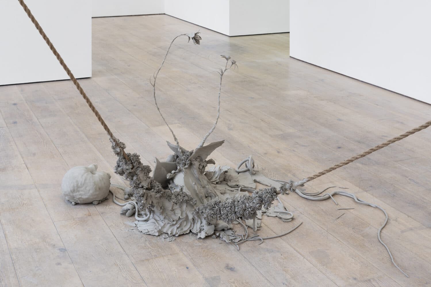 Phoebe Cummings (b.1981) makes time-based ceramic installations from unfired clay. Highlighting the fragility of the material while delving into themes of impermanence and decay, her work generally takes the form of botanical elements and is mostly site specific. The time-based nature of the work also has a performative quality: works are dissolved after the exhibition, or sometimes over the course of it, depending on the inherent fragility of the structure. Referencing the fragile relics of past and future histories, Cummings’ works frequently return themselves to dust.