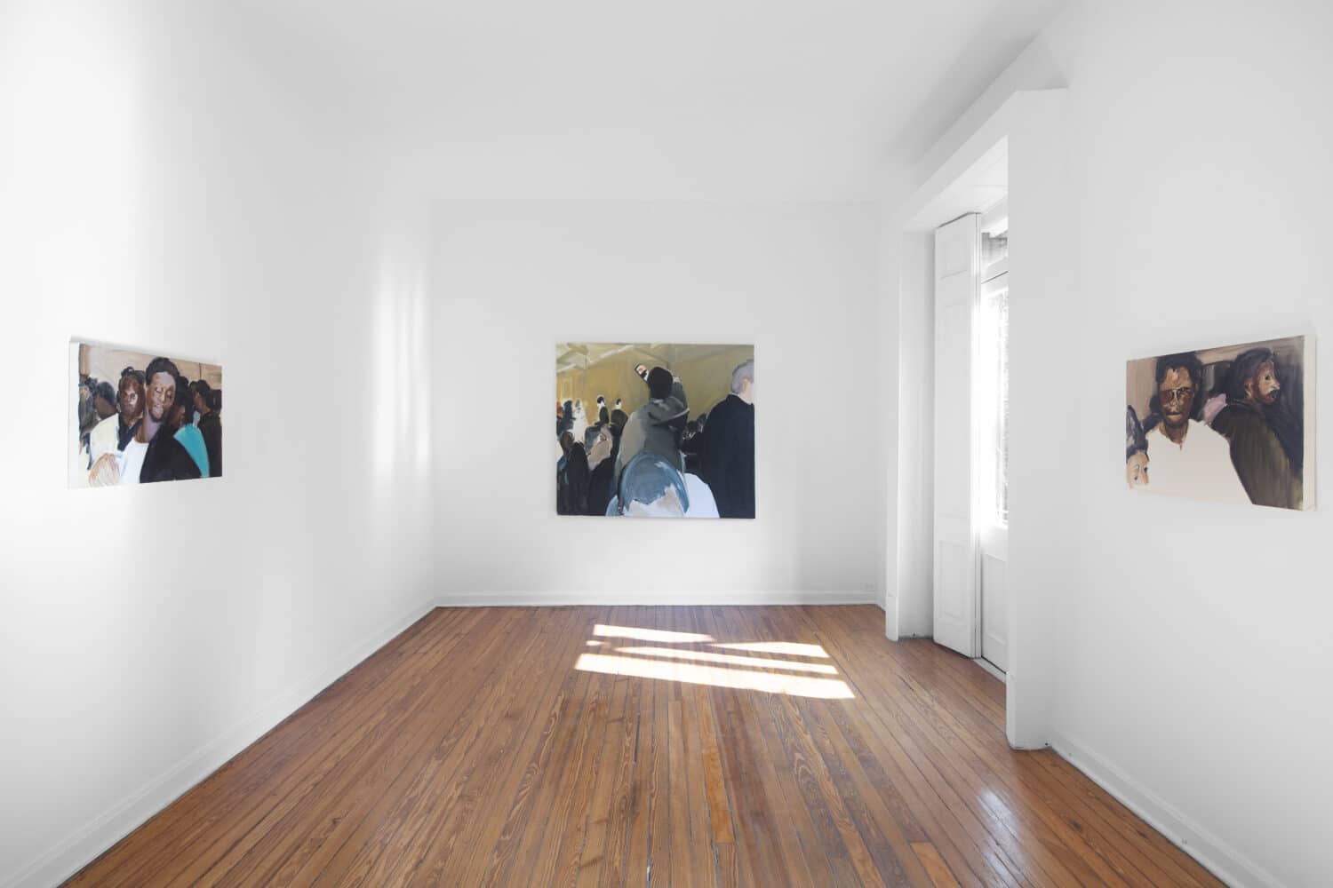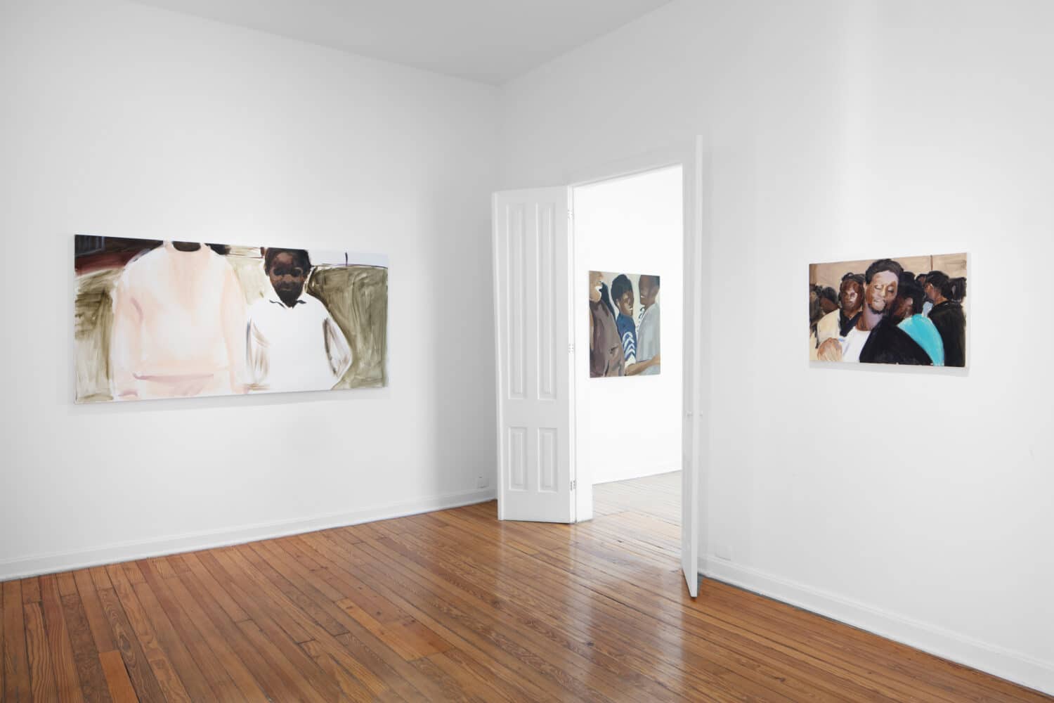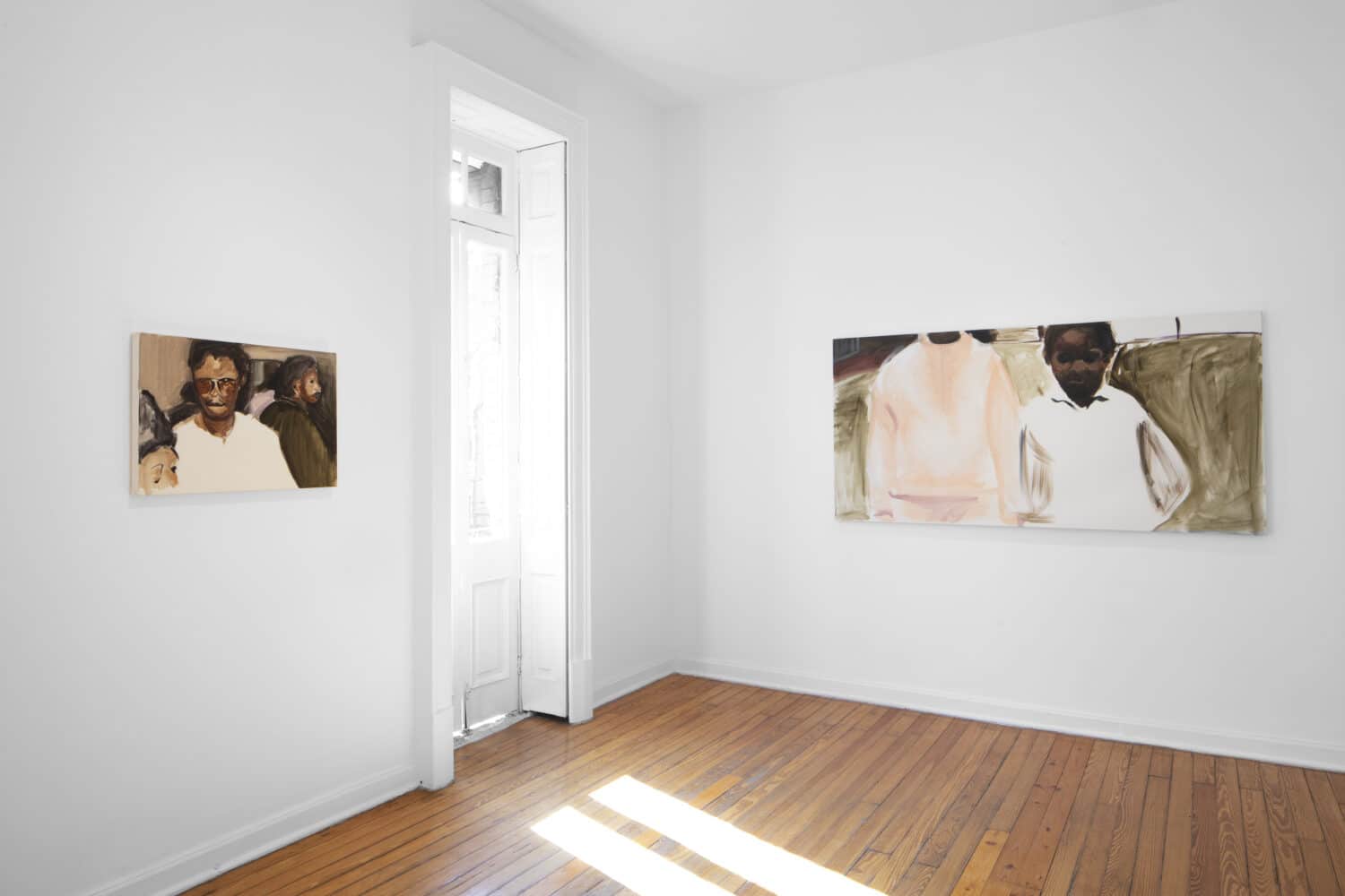 This exhibition juxtaposes two rhythms of painting: some works are assembled by a slow, additive process, while in other works the gesture becomes quick and the layers almost disappear. Different temporalities thus lie in each individual image. Moreover, materiality is approached here as a study of time and narrative: a method that leaves room for the viewer's own associations and impressions, allowing them to fill in the scene that lingers outside the painted image.
