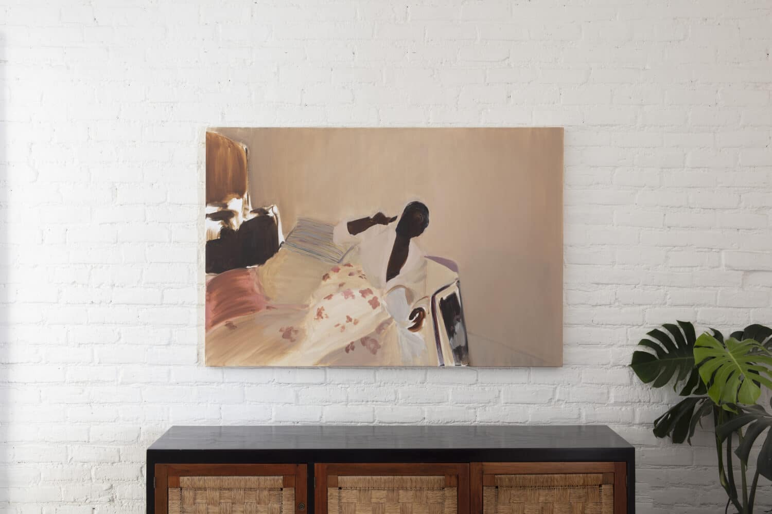 The perspective of the figures in the paintings are placed in the foreground - often oversized and almost too close to the viewer - yet there is breathing space to look at and enjoy the silence. Fluctuating between figuration and abstraction, Look Here delves into the artist’s own experiences of perception and reality, connection and disconnection.