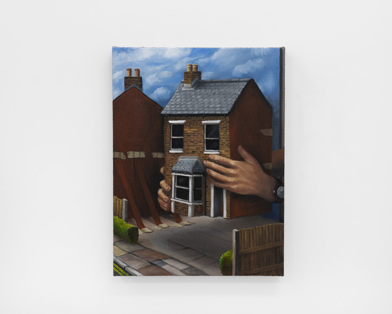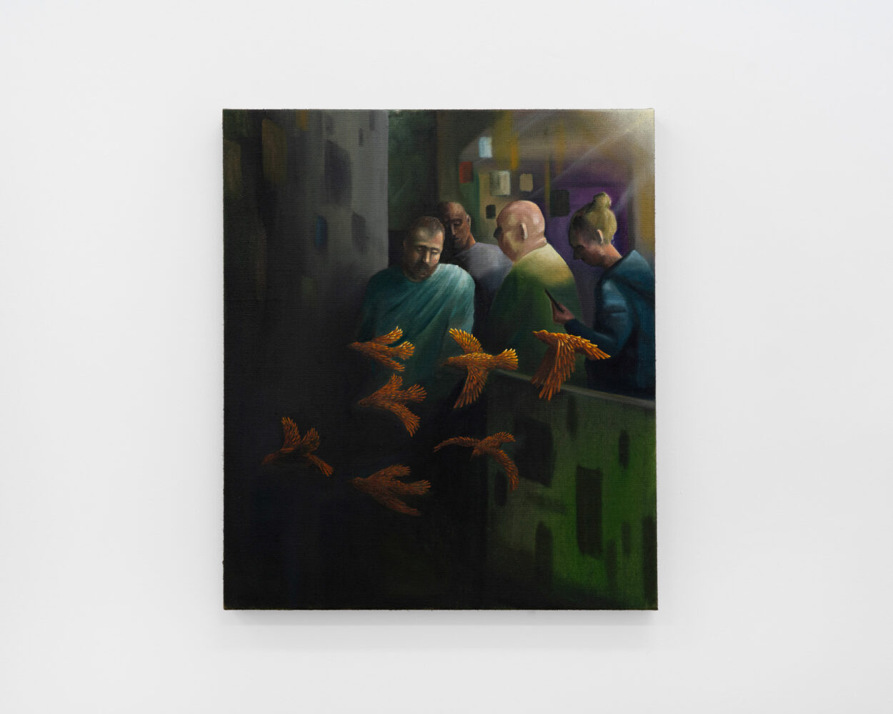 The imagery in the paintings is drawn from various sources: some works reference found photography, while others are painted from the artist’s memory and imagination. Much like dreamscapes or fragmented recollections, the personal and the universal often intermix with the fantastical and surreal.