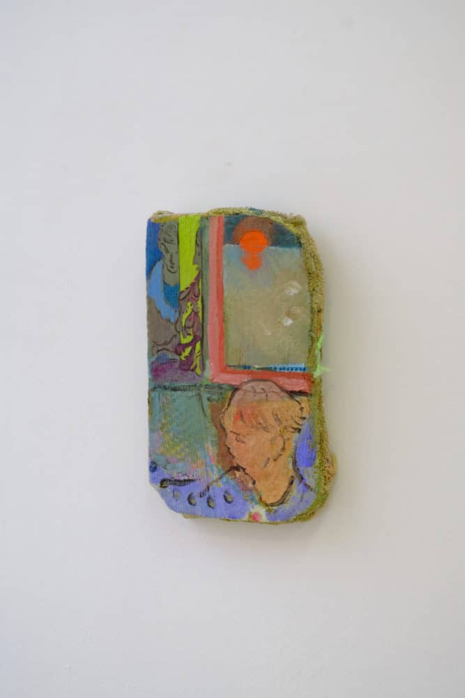 The duality of the environment is present in Lewis’s paintings – the paint is often waxy, rigid, unwilling to bend to the artist’s hand. Much like the island, his paintings aren’t passive, they are to be argued with. Often working on multiple paintings at once he allows every aspect of them to be fragile; easily erased and replaced.The works titles often serve to change the perception of the reading of the paintings too, they are often worked on with as much labour as the paintings themselves. Much like language, the colour and texture of the works can change, becoming signs that lose their meanings and gain new ones.